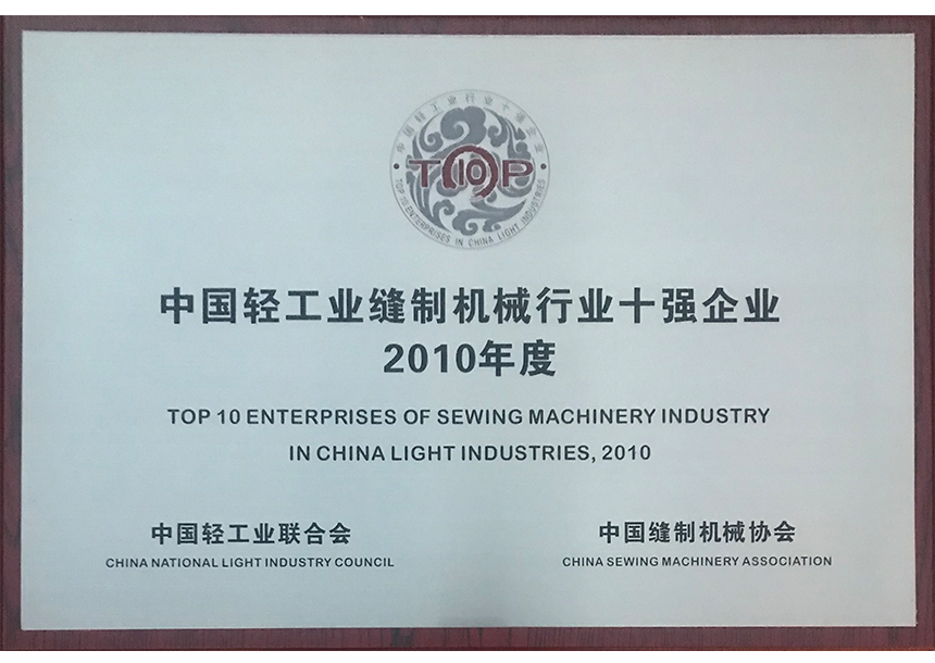 • 2010轻工业缝制机械行业十强