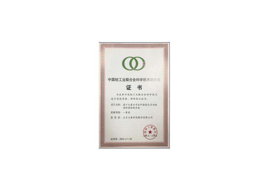 • 基于大豪云平台的智能化多功能特种绣控制系统荣获中国轻工联合会科技进步一等奖